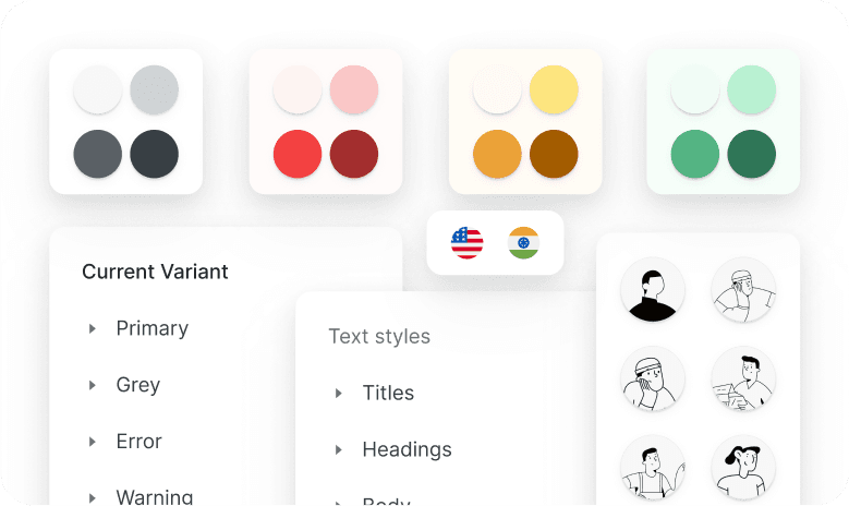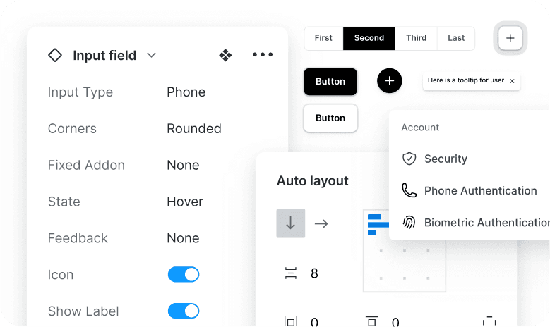 Extensive collection of styles for typography, colors, spacing, etc., to craft visually stunning interfaces. Convert existing styles to your brand’s visual language and automatically apply changes inside the whole kit.